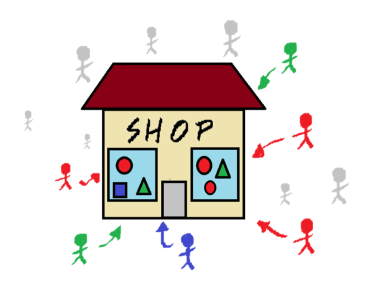 Mon client bleu achète mon carré bleu, mais mes ‘non-clients bleus’ auraient bien voulu l’avoir… mais il n’y en a plus…