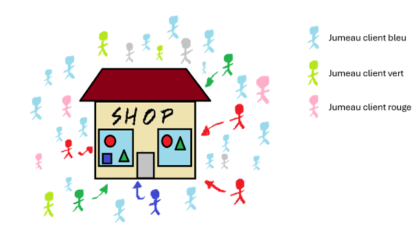 Ok, le titre est bête, mais je trouve que ça va mieux en le disant. Ce que j’essaye de dire, c’est que si on regarde le schéma précédant, on s’est focalisé sur les clients, mais que fait-on des petits bonhommes gris (oui, oui, c’est des bonhommes !) ???